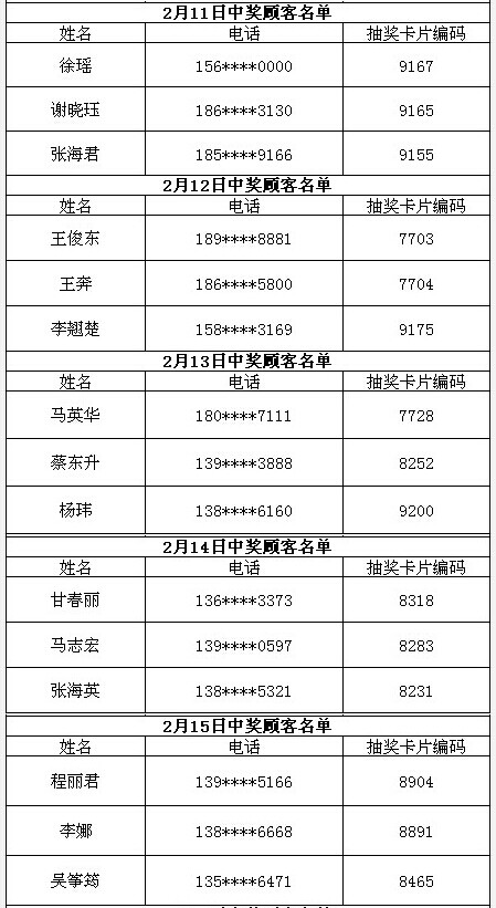 每日中獎(jiǎng)名單公布如下: